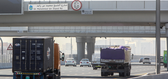 استخدام الشاحنات لشارع الشيخ محمد بن زايد يتسبب في حوادث مرورية. أرشيفية