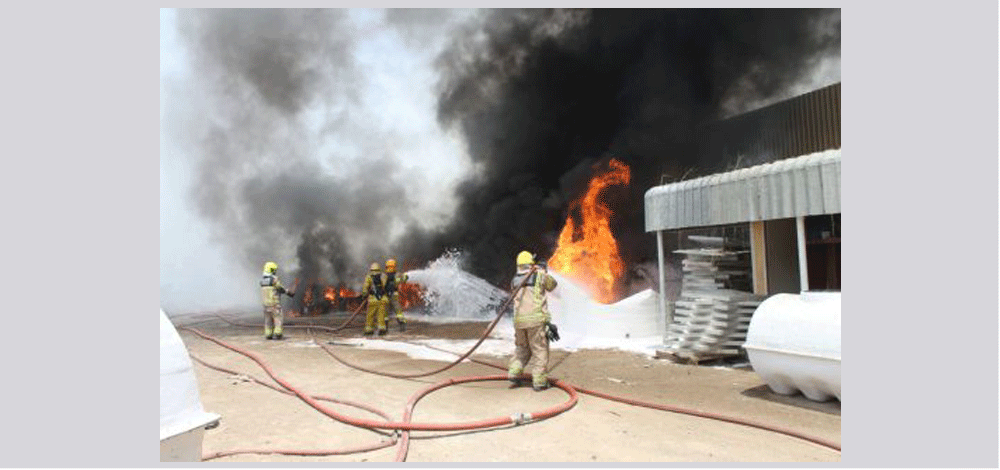 فرق الدفاع المدني بعجمان تسيطر على حريق مصنع الفيبر جلاس