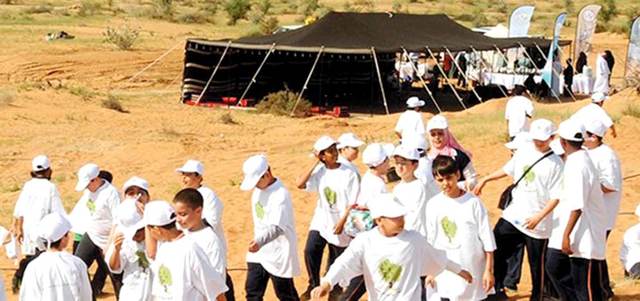طلبة مدارس يشاركون في حملة للمحافظة على البيئة البرية. من المصدر