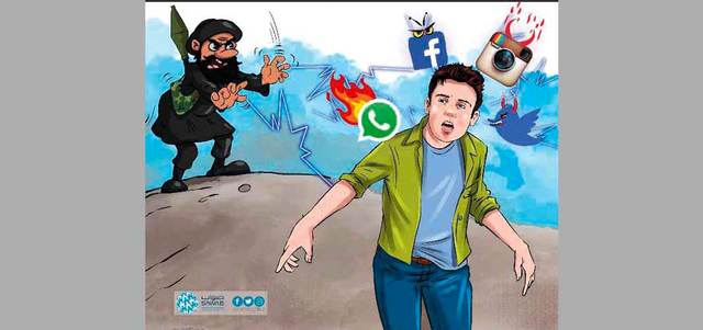 ونبه «صواب» عبر تغريدات بثها على حسابه على موقع «تويتر»، لمحاولات التنظيم الإرهابي استقطاب مجندين جدد عبر الإنترنت، معتبراً أن قيام البعض بنشر أخبار التنظيم يساعد أبرياء على الانضمام إلى صفوفهم.