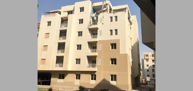 تم إخلاء المبنى من السكان فور حدوث الانفجار الذي سبب أضراراً بشقتين في الطابق الخامس. الإمارات اليوم