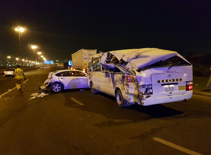 وتفصيلاً، قال المزروعي إن الحادث الأول وقع في الساعة السابعة والنصف صباح السبت الماضي، عندما وقع حادث تصادم بين ثلاث مركبات على شارع الشيخ زايد في الاتجاه القادم من نفق المركز التجاري إلى نفق الكرامة، لافتاً إلى أن مركبة من طراز "كيا " انحرفت فجأة أمام مركبة من طراز "برادو" واصطدمت المركبتين، وبعد توقفهما بنحو ثلاث دقائق فقط، قدمت حافلة خفيفة، وصدمت المركبة الثانية "برادو" من الخلف، ما أدى إلى إصابة 14 شخصاً.