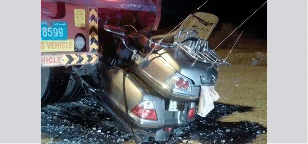 وقال مصدر في شرطة أم القيوين، إن غرفة العمليات تلقت يوم السبت الماضي الساعة الثامنة مساء بلاغا يفيد بوقوع حادث تصادم دراجة نارية بشاحنة على طريق شارع الشيخ محمد بن زايد.