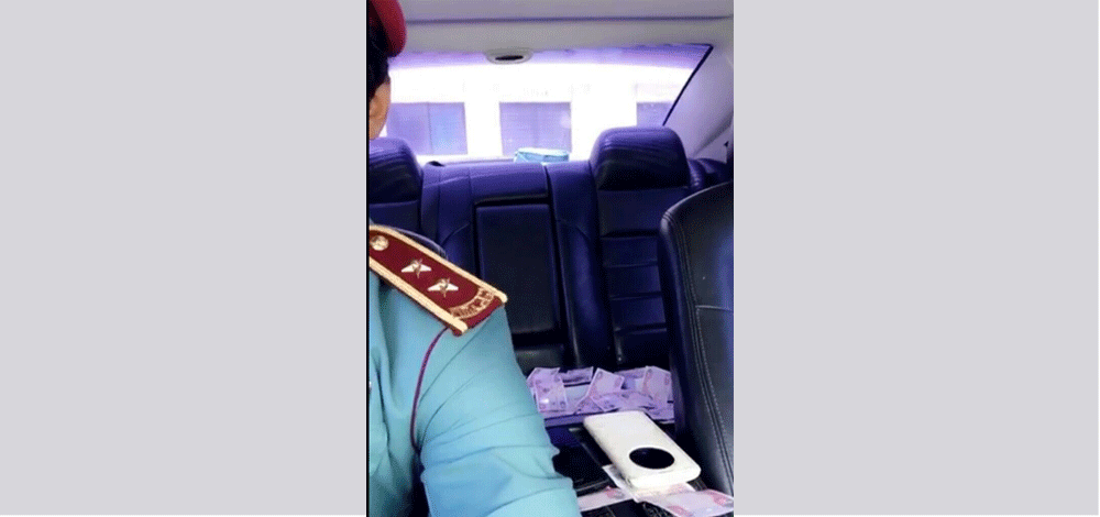 وكان المنتسب قد ظهر في فيديو وهو يعبث بشكل استعراضي بأوراق نقدية داخل مركبته، وبزيه الرسمي.