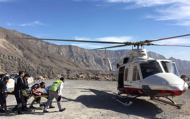وقال نائب مدير إدارة جناح الجو في وزارة الداخلية العقيد الركن طيار سالم خليفة سالم السويدي، ان غرفة عمليات جناح الجو قد تلقت طلباً، عند الساعة 11 وأربعين دقيقة صباح أمس الاحد، للتعاون مع طاقم الاسعاف الوطني الطبي المتواجد في مكان الحادث بنقل المصاب الى المستشفى جواً، وعلى الفور توجه فريق طبي من اسعافنا الجوي إلى مكان الحادث، للمساعدة بتوفير الاسعافات الأولية، والنقل إلى مستشفى الشيخ خليفة التخصصي.