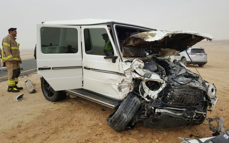 توفي مواطن وأصيب رجل (آسيوي) إثر تعرّض مركبتهما لاصطدام بليغ من مركبة تقودها مواطنة، عكس السير، وقت الضباب الكثيف في دبي.