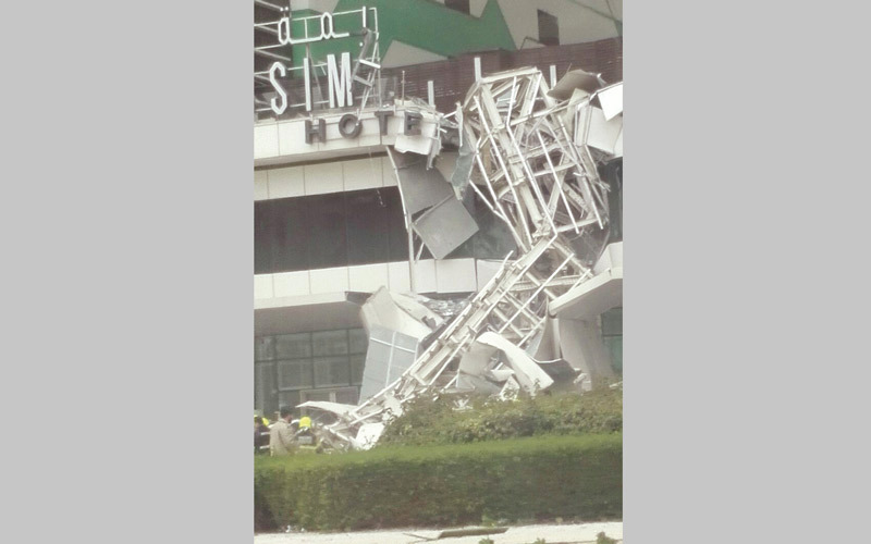 الرياح الشديدة تُسقط رافعة من فوق برج في شارع الشيخ زايد