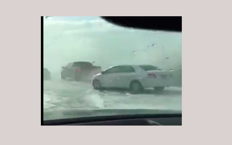 بالفيديو.. مياه الأمواج تتسبب في إغلاق نفق نخلة جميرا