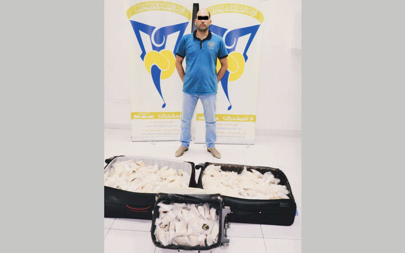 وقال المنصوري إن «معلومات وردت من مصادر موثوقة عن أن زائراً خليجياً (31 عاماً) يحوز كمية من العقاقير المخدرة».