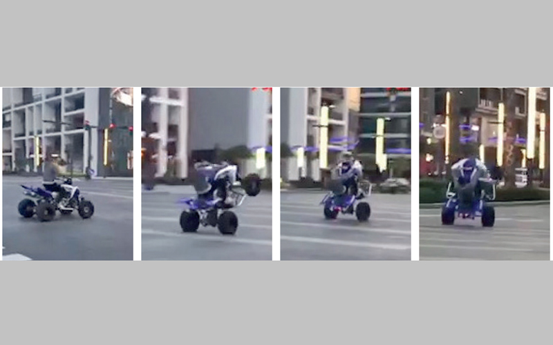 رصدت شرطة دبي مراهقاً استعرض بدراجة ترفيهية في منطقة «سيتي ووك»، ونشر فيديو لنفسه أثناء رفع الدراجة على إطارين، مؤدياً حركات خطرة، على الرغم من حظر سير هذا النوع من المركبات في الطرق العامة.