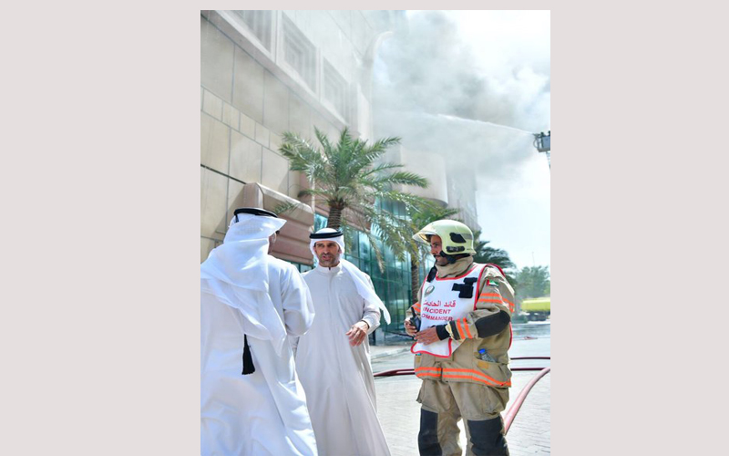 وتابع القائد العام لشرطة دبي، اللواء عبدالله المري، و مدير عام الدفاع المدني في دبي، اللواء راشد المطروشي، عملية اخماد الحريق .