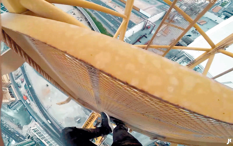 شرطة دبي تستدعي مغامراً تسلل إلى برج وتسلق رافعة على ارتفاع 50 طابقاً