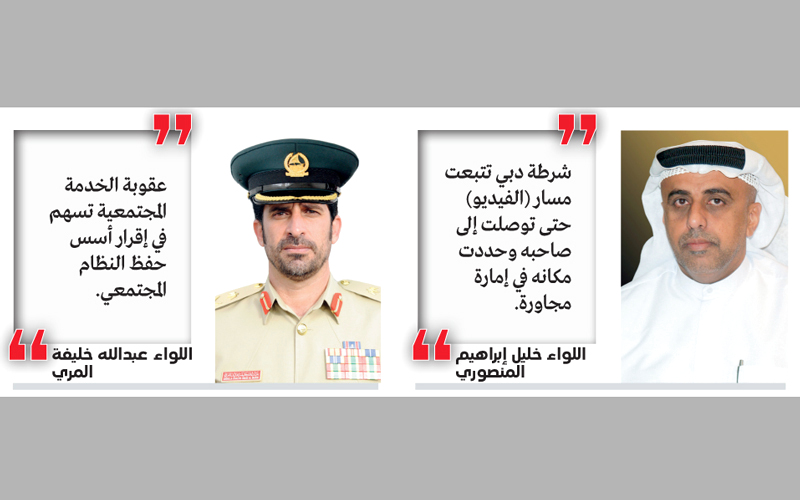 من جهته، قال مساعد القائد العام لشرطة دبي لشؤون البحث الجنائي، اللواء خليل إبراهيم المنصوري، لـ«الإمارات اليوم»: إن الإدارة العامة للتحريات والمباحث الجنائية ستتولى تنفيذ أمر صاحب السمو الشيخ محمد بن راشد آل مكتوم، بحق المتهمين بارتكاب الواقعة، تماماً كما كلفت سابقاً بتنفيذ عقوبة الخدمة المجتمعية على الشباب المتورطين في واقعة استعراض «سيتي ووك».