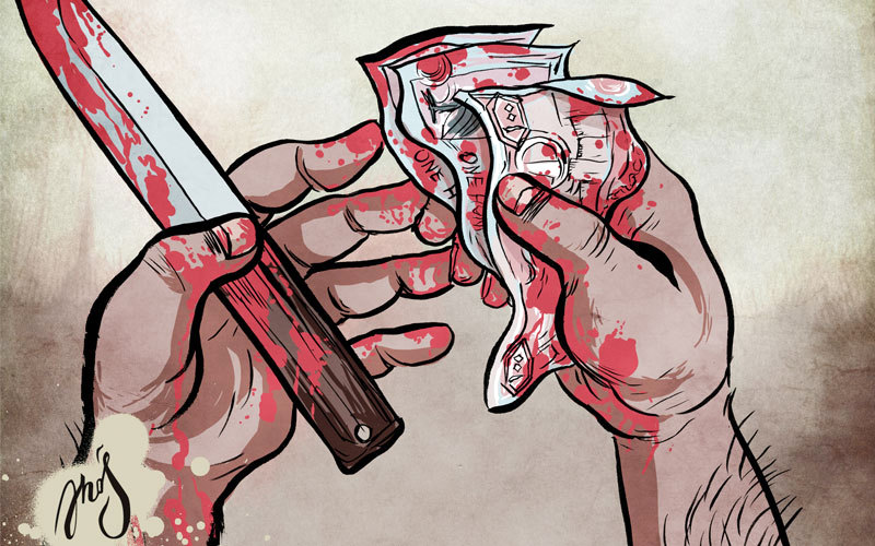 وأضاف: «علمت أن ابن جارنا الآسيوي، الذي فقد عمله منذ أشهر، تسلل إلى المنزل من النافذة، وتوجه إلى الخادمة، سائلاً عن مكان النقود، إلا أنها لم تستجب، فسدد لها طعنات بسيطة، ثم توجه إلى غرفة النوم، حيث كانت تنام زوجتي واثنان من أطفالي (3 و5 سنوات)، وعندما شعرت به سدد لها طعنات عدة. وأثناء مقاومتها له، سمعت صراخها ابنتي (نتالي ــ 11 عاماً)، التي كانت نائمة في غرفة مع شقيقها (حمد ـ 9 أعوام)، فأسرعا إليها، ووجداها تنزف بشدة، فأخذت (نتالي) تصرخ، إلا أن المتهم سدد لها تسع طعنات، مسبباً لها نزيفاً حاداً بالرئة، ثم توجه إلى (حمد) وسدد له أربع طعنات».