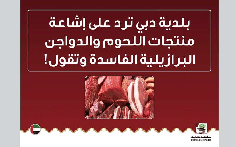بلدية دبي ترد على إشاعة منتجات اللحوم والدواجن البرازيلية الفاسدة