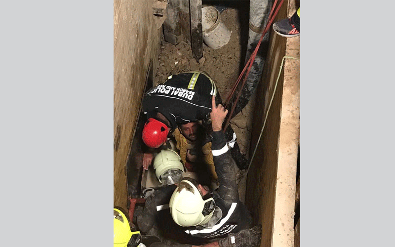 شرطة دبي تنقذ عاملاً انهال عليه التراب في حفرة