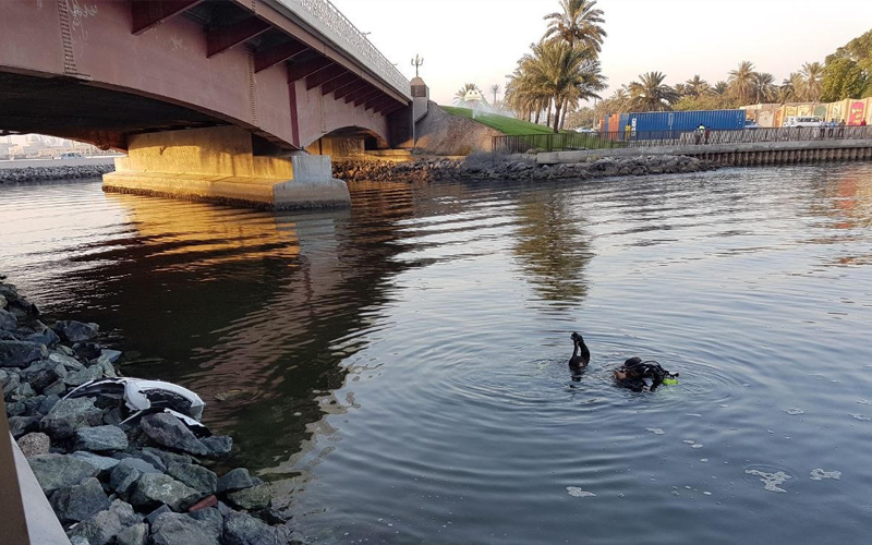 أصيب سائق مركبة من جنسية دولة آسيوية في العقد الثالث من العمر، بإصابات متوسطة نتيجة تعرض مركبته للصدم من الخلف وسقوطها بمياه بحيرة خالد أسفل جسر الخان من قبل سيارة خاصة يقودها شخص من جنسية دولة عربية في العقد الثاني من العمر يسير بسرعة زائدة على ذات الطريق باتجاه وسط مدينة الشارقه ما إدى الى انحرافها واصطدامها بالمركبة الاولى التي تسير أمامها والتي اندفعت الى يمين الطريق لتصطدم بالحاجز الحديدي لتسقط من اعلى الجسر في مياه بحيرة خالد .