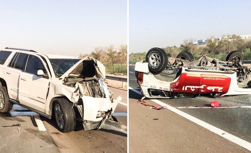 مركبة مسرعة تصطدم بدورية مرور في أبوظبي