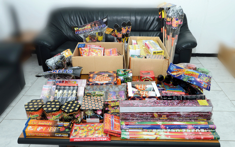 ألعاب نارية بعد مصادرتها. من المصدر
