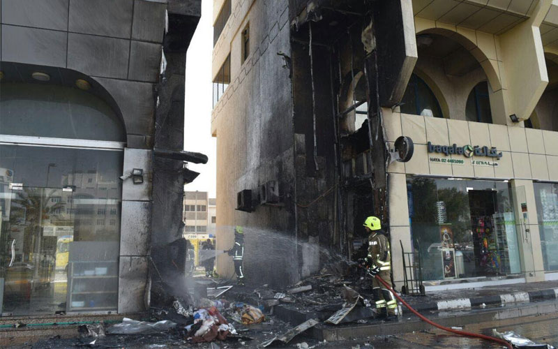 وذكر مدير عام الدفاع المدني في أبوظبي العقيد محمد عبد الجليل الانصاري بأن غرفة العمليات تلقت بلاغاً عند الساعة الخامسة مساء، يفيد بوجود حريق في المكان المذكور، وعلى الفور تحركت فرق الدفاع المدني من مراكز القبيسات و"التدخل السريع" "الفلاح"، وعملت على اخلاء البناية على الفور احترازياً من سكانها، واخماد النيران لوقف امتدادها متفادين أية إصابة بشرية .