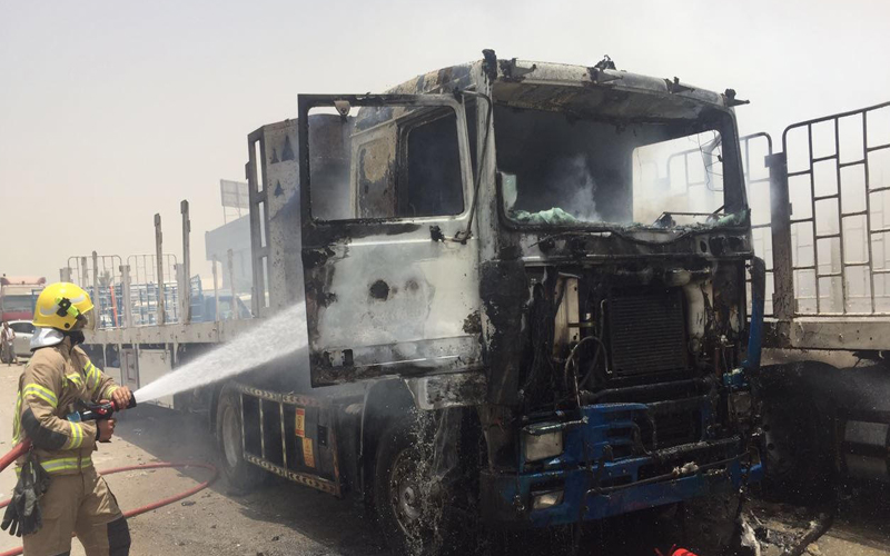 الدفاع المدني في عجمان يسيطر على حريق شاحنة بـ "صناعية عجمان"
