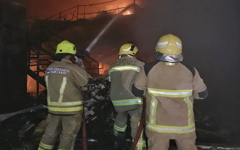 الدفاع المدني يسيطر على حريق في مستودع بـ "ميناء زايد " بدون إصابات