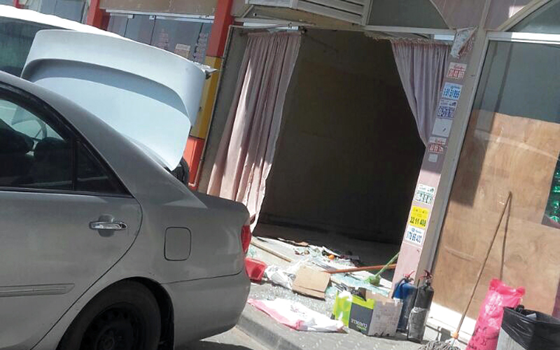 إصابة 3 آسيويين في حادثي اقتحام مركبة لمحل وانفجار برميل