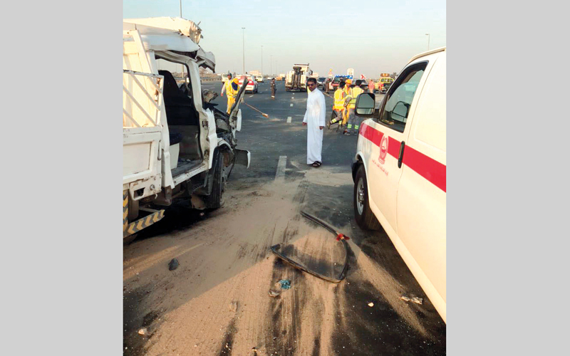 وقال مدير مركز شرطة الراشدية، العميد سعيد حمد بن سليمان آل مالك، إن الحادث وقع في الساعة الرابعة من مساء أمس، حين اندفعت مركبة «بيك آب» بقوة، وصدمت شاحنة، نتيجة عدم ترك مسافة كافية من قبل سائق السيارة الأولى، لافتاً إلى أن المركبة الثانية اندفعت بدورها وصدمت شاحنة ثالثة. وأضاف أن المركبة الأولى المتسببة في الحادث تحطمت إلى درجة كبيرة، وتوفي سائقها وثلاثة أشخاص كانوا برفقته، وأصيب ثلاثة آخرون بإصابات بليغة، ونقل أحدهم إلى المستشفى بوساطة النجدة الجوية.