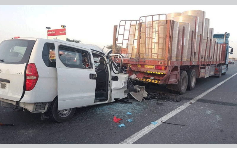 توفي شخصان وأصيب خمسة آخرون بإصابات متفاوتة، في حادث تصادم بين حافلة ركاب وشاحنة على شارع الإمارات تجاه الشارقة.