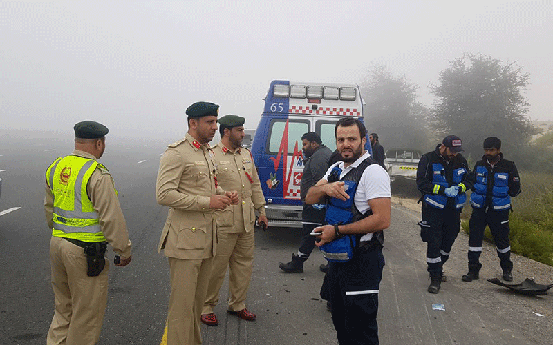 وقال مدير الإدارة العامة للمرور بشرطة دبي العميد سيف مهيّر المزروعي إن الضباب الكثيف كان سببا رئيسا في الحادث الذي تسبب في نوع من الازدحام في شارع الإمارات بالاتجاه إلى أبوظبي، وتدخلت دوريات الشرطة لتسيير حركة المرور وتفادي اصطدام مركبات أخرى بالمركبات التي اشتركت في الحادث، خصوصاً في ظل صعوبة الرؤية.
