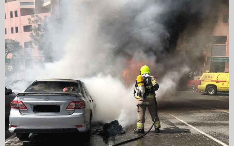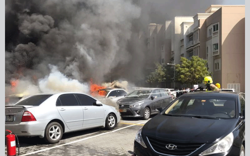 حريق 5 سيارات في منطقة ديسكفري جاردنز بدبي