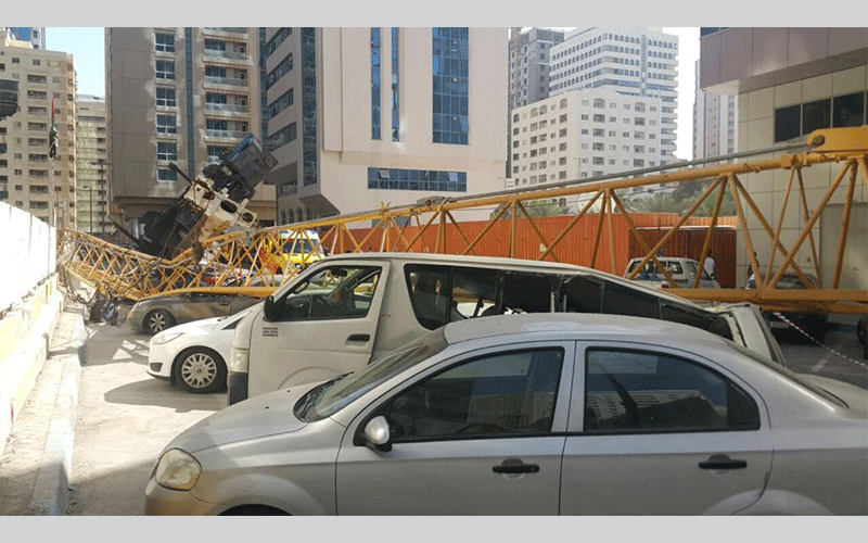 سقوط رافعة بموقع بناية قيد الإنشاء في أبوظبي