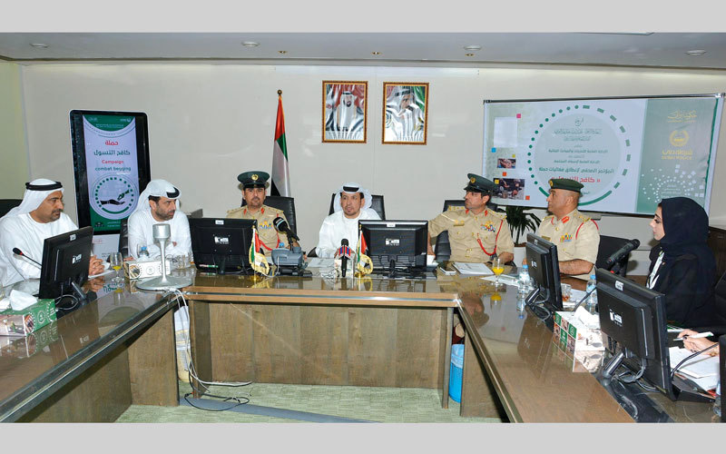 شرطة دبي خلال الإعلان عن استراتيجيتها الجديدة لمكافحة التسول. من المصدر
