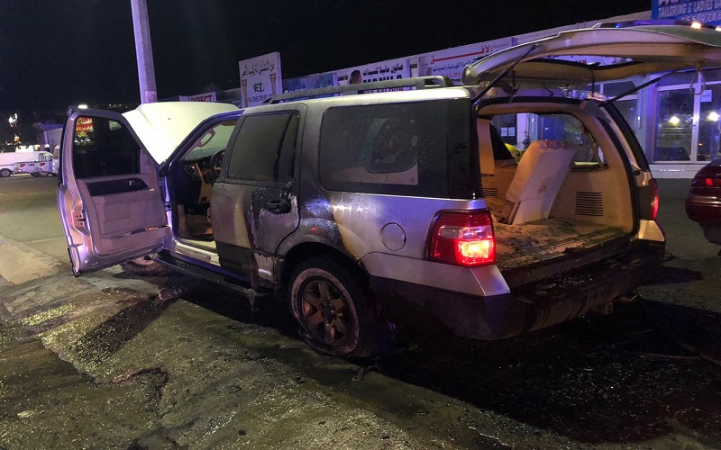 تفصيلا ورد بلاغ لغرفة عمليات الدفاع المدني عند الساعة ١٠:٣٠ ليلاً يفيد بنشوب حريق في مركبة من نوع "فورد" بعد اصطدامها بعمود إنارة مما أدى إلى إشتعال النيران فيها، ولكن سرعة تدخل رجال الدفاع المدني حالت دون إمتداد النيران إلى داخل المركبة حيث قامت الفرقة بالسيطرة على النيران وإخمادها .