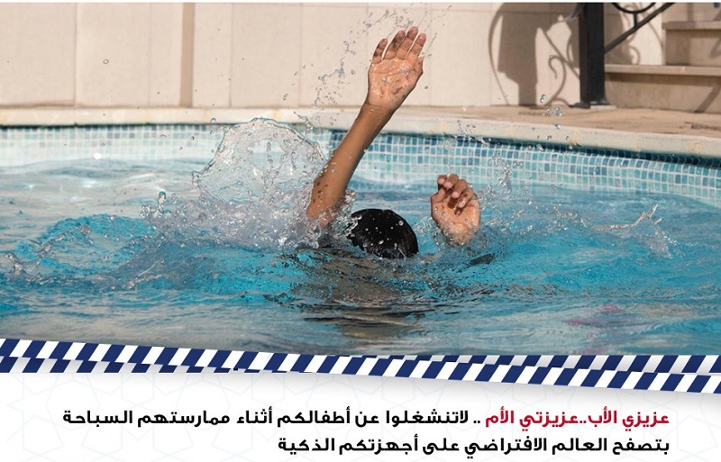 وطالبت الأسر بعدم الانشغال بتصفح الأجهزة الذكية أثناء ممارسة الأطفال للسباحة وعدم الانتباه إليهم ،ما يشكل خطراً بالغاً عليهم خصوصاً في حال عدم وجود مرافق معهم ،وتجنب تعبئة حوض السباحة كاملاً بالماء عند استخدامه من قبل الأطفال.