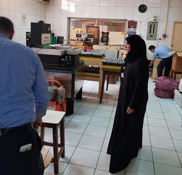 وأكدت الشيخة شذى المعلا أنه بناء على المعلومات التي وردت إلى قسم رقابة الأغذية حول الموقع والنشاط الذي يمارسه، تم التأكد من صحتها وتمت عملية المداهمة، حيث تبيّن أن المصنع يمارس نشاط اقتصادي بدون ترخيص ويفتقر لأدنى اشتراطات الصحة والسلامة، وكان الموقع يحتوي على قسم تحميص وتعبئة البن لصالح محمصة معروفة، وقسم آخر لقلي المكسرات، وقسم لتحضير عجينة الكنافة وخبز الصاج لصالح أحد المخابز المعروفة أيضاً، وغرفة تبريد لحفظ بعض المواد الغذائية، وقسم لتحميص المكسرات وتعبئتها، حيث يبلغ عدد العاملين في الموقع 15 عاملاً تقريباً لا يملكون بطاقات صحية ومهنية.
