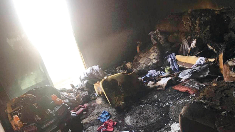النيران أتت على محتويات غرفة كاملة. من المصدر