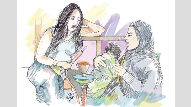 «الإمارات اليوم» رصدت تردّد نساء حوامل وأمهات برفقة أطفالهن على المقاهي، حيث يقضين أكثر من ساعتين في التدخين، وسط سحابة من الدخان الكثيف، غير عابئات بما قد يتعرضن له أو أطفالهن من أمراض، نتيجة استنشاق الدخان.