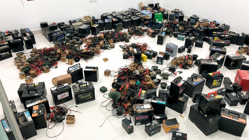 وبلغ مجموع المعدات والأدوات التي تمت مصادرتها من أجهزة وسماعات وبطاريات وحقائب 459 قطعة، من بينها 205 أجهزة، و70 سماعة، و181 بطارية، وثلاث حقائب، وذلك في مناطق عدة.