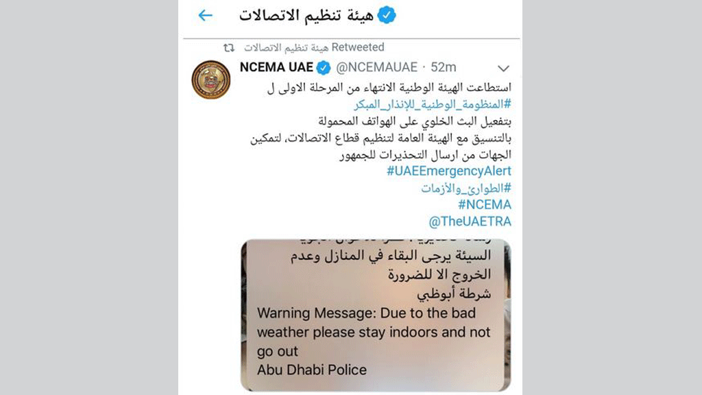 رسائل تحذيرية للجمهور على الهواتف في دبي وأبوظبي