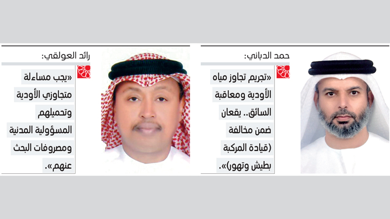 وقال المحامي الدكتور رائد العولقي، لـ«الإمارات اليوم»، إن سن تشريع قانوني يجرم قطع وتجاوز مجرى الأودية خلال سقوط الأمطار الغزيرة بات أمراً ضرورياً بعد وقوع حوادث وفقدان سائق في مياه القور، واستنزاف إمكانات الدولة في البحث عنهم.
