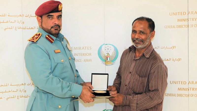 كرّم نائب المدير العام للإدارة العامة للدفاع المدني بعجمان، العميد راشد جاسم مجلاد، فاروق إسلام نور الحق (50 عاماً ــ بنغالي)، تقديراً لبطولته في إنقاذ طفل (3 أعوام)، ألقت به أمه من شرفة شقتها بمنطقة النعيمية، لتنقذه من حريق شب في ممر البناية، ونتج عنه انتشار دخان كثيف، ثم ساعد الأم على القفز من الشرفة.