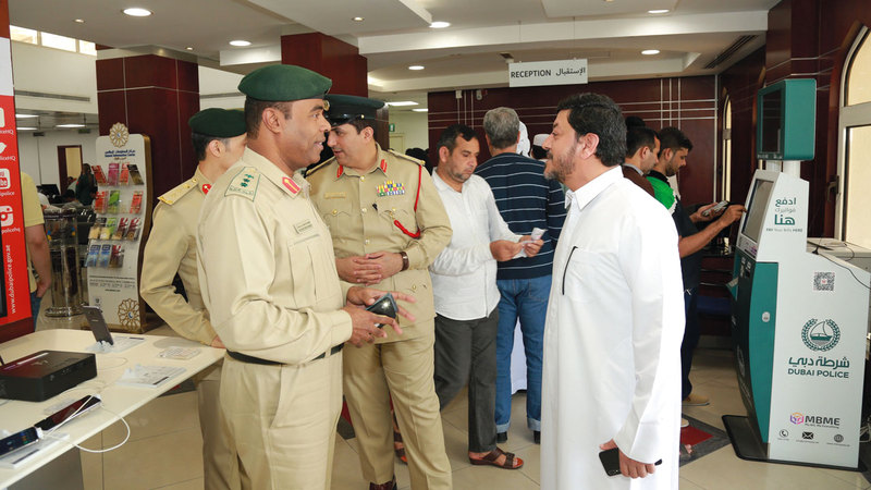 تفقد مدير الإدارة العامة للمرور بالوكالة في شرطة دبي، العقيد جمعة سالم بن سويدان، مراكز إسعاد المتعاملين في إدارة تحصيل المخالفات والخدمات المرورية، وإدارة متابعة المخالفات، واطلع على مدى تطبيق تلك الإدارات الفرعية على خطة التحول الذكي، في تقديم الخدمات التي أعلنت عنها شرطة دبي.