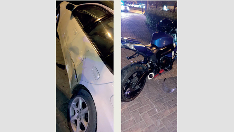 وقال رئيس قسم المرور والدوريات في شرطة عجمان، الرائد فؤاد الخاجة، إن الحادث وقع على شارع الشيخ زايد في منطقة الحميدية، نتيجة تدهور دراجة نارية، يقودها شاب خليجي بعد اصطدامه بالرصيف، ثم صدم مركبة متوقفة على جانب الطريق، وأسفر الحادث عن إصابة الشاب قائد الدراجة.