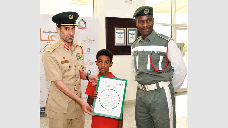 المري خلال تكريم الشرطي بصحبة ابنه. من المصدر