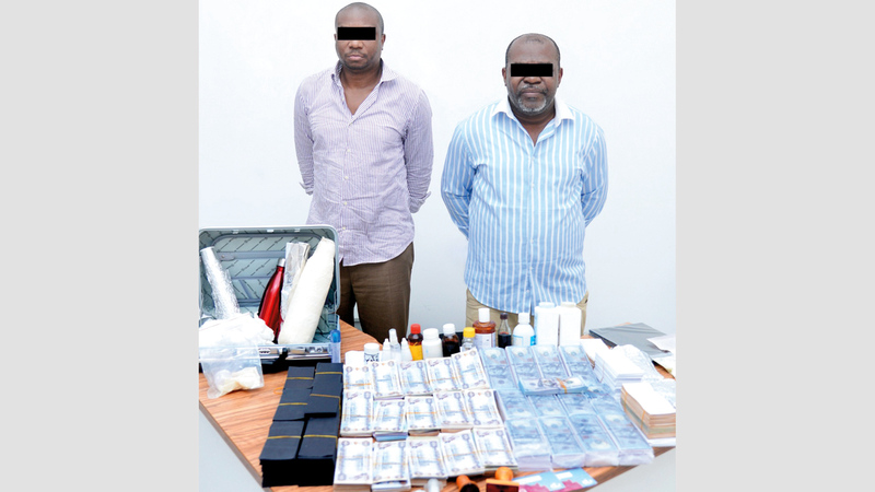 وعلى ضوء ذلك، باشر فريق من رجال التحريات والمباحث الجنائية متابعة البلاغ، حيث توصلوا إلى الجانيين وأماكن وجودهما، وضبطهما بعد وضع كمين محكم لهما، وبعد التحقيق اعترف أحدهما بعملية الاحتيال على المدعو (م.ر.م) الذي تعرف إليه عن طريق إحدى وسائل التواصل الاجتماعي، واتفق معه على مقابلته بشقته السكنية في أحد أحياء الشارقة لغرض مضاعفة أمواله، بعدها انتقل فريق العمل إلى شقة المتهم (ش.ب.م)، وبتفتيشها تم ضبط رزم من العملات المحلية والأجنبية المزيفة، إضافة إلى العديد من الأجهزة الإلكترونية والمواد التي تستخدم في عملية التزييف، وبناءً على تلك المعطيات تم توقيف المتهمين وإحالتهما إلى النيابة العامة في الشارقة.