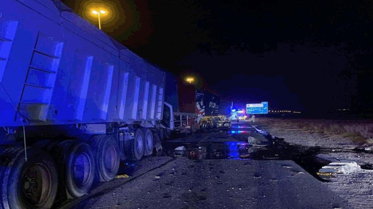 إصابة سائقين في تصادم أربع مركبات ثقيلة باتجاه رأس الخيمة