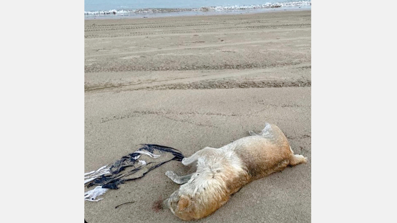 كلب نفق بالسم على شاطئ البدية في الفجيرة. من المصدر