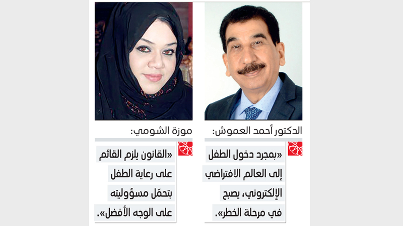 وقال أستاذ علم الاجتماع التطبيقي وأستاذ علم الجريمة في جامعة الشارقة، الدكتور أحمد فلاح العموش، لـ«الإمارات اليوم»، إنه بمجرد دخول الطفل إلى العالم الافتراضي الإلكتروني يكون في مرحلة الخطر، ويكون معرضاً في أي لحظة للانحراف في سلوكياته التي تصبح غير مقبولة مجتمعياً.