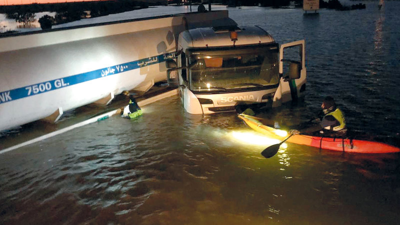«إنقاذ الإمارات» ينقذ سائق شاحنة حاصرته المياه يومين في العين